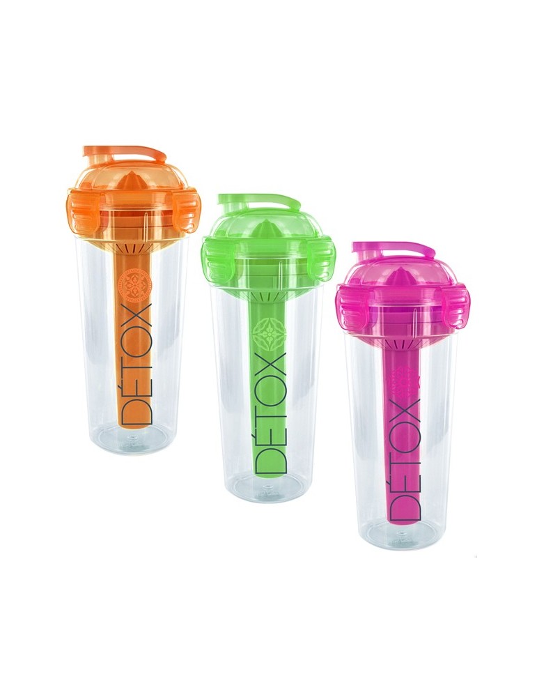 Añada agua al pistón refrescador y congélelo. Exprima las frutas en el mismo mug. Ciérrelo con su tapa hermética. Bebida siempre fresca en cualquier lugar. Colores surtidos.