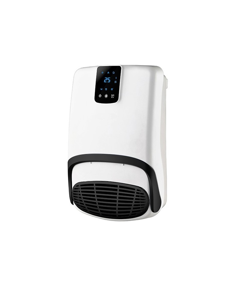 Calefactor cerámico con asa plegable para toalla. 1000-2000W. Táctil, Display Led. Funciones: ventilación, calefacción baja y alta. Mando a distancia, luz indicadora de fuente eléctrica, termostato para prevenir sobrecalentamiento, temporizador y programador semanal. IP 23. ECO diseño.