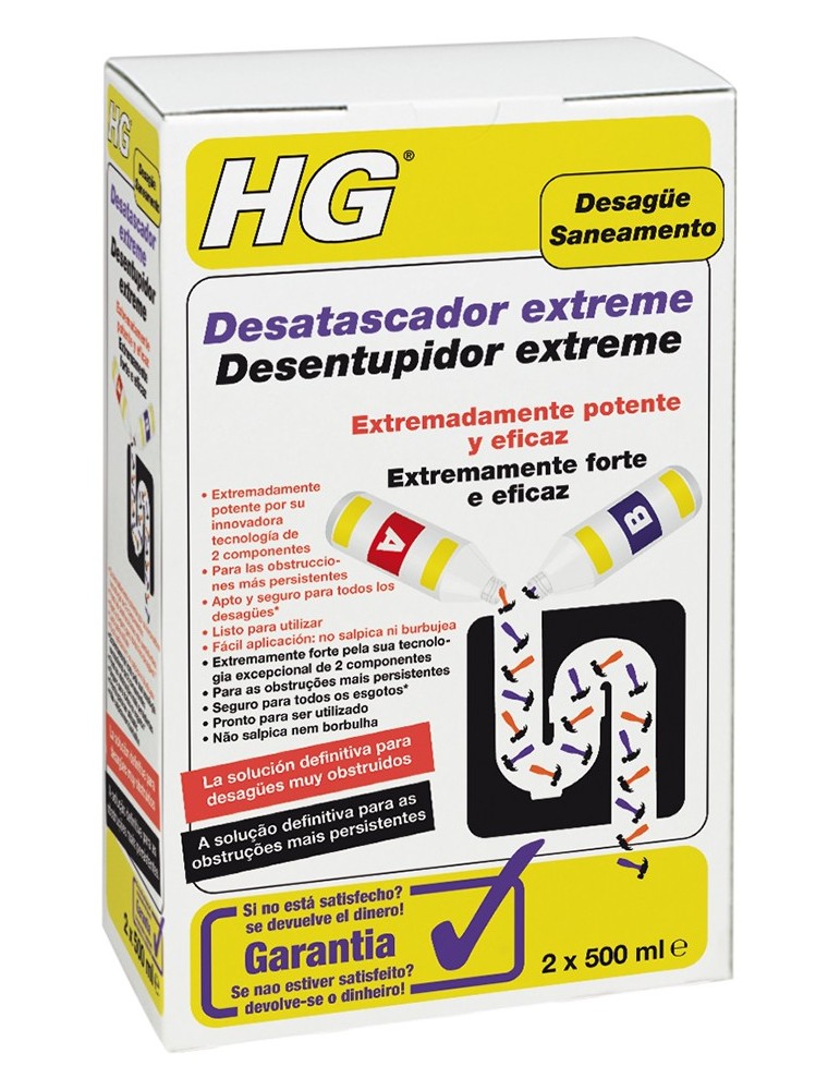 Extremadamente potente por su innovadora tecnología de dos componentes. Para las obstrucciones más persistentes. Apto y seguro para todo tipo de desagües. Listo para usar. Fácil aplicación. Válido para cocinas y baños. No salpica ni burbujea. 2X 0,5 l.