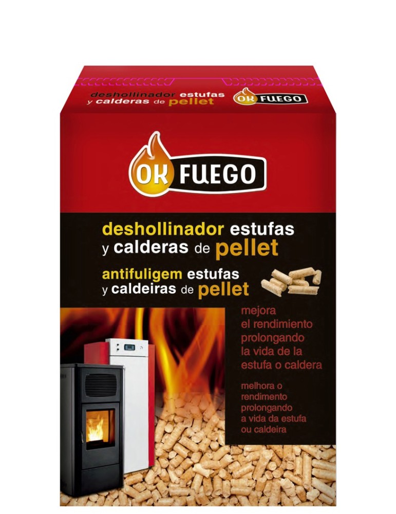 Previene y elimina la acumulación de hollín, alquitrán y polvo, en estufas y calderas de pellet. 1,5 kg.