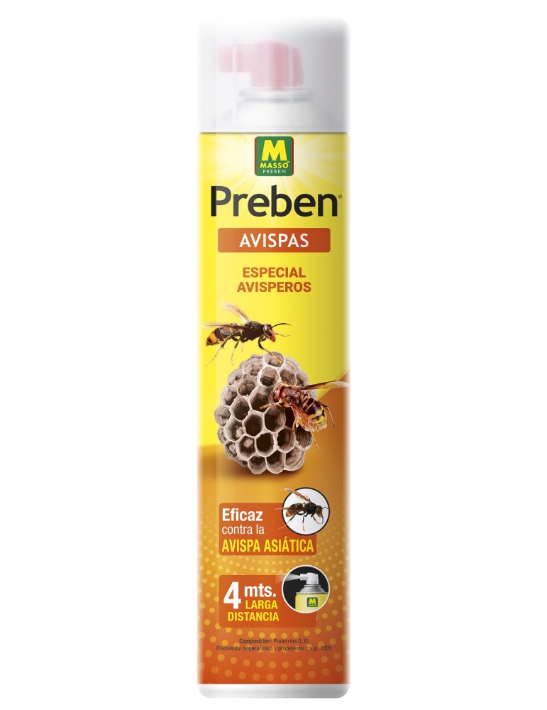 Con elevado efecto de derribo y mortalidad sobre avispas y avispones. El aerosol está dotado con una válvula para poder pulverizar el producto hasta 4 m. Envase de 750 ml.