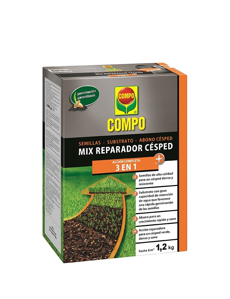 Producto especialmente diseñado para reparar las calvas y/o zonas estropeadas del césped. Solución 3 en 1, substrato, abono y semilla de césped.