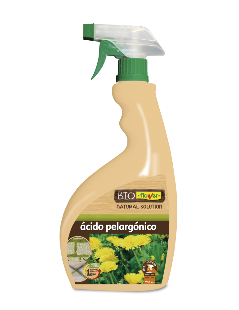 Producto natural. Producto natural desinfectante y alguicida formulado con ácido pelargónico para aplicar directamente sobre superficies porosas. 750 ml.
