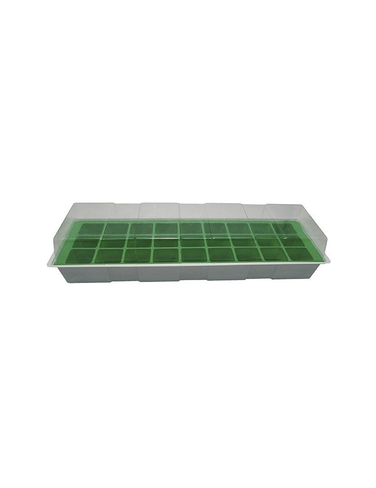 Medida: 49 x 15,5 cm. Material: PVC. Contenido del kit: Bandeja. Semillero de 27 macetas de PVC. Tapa.