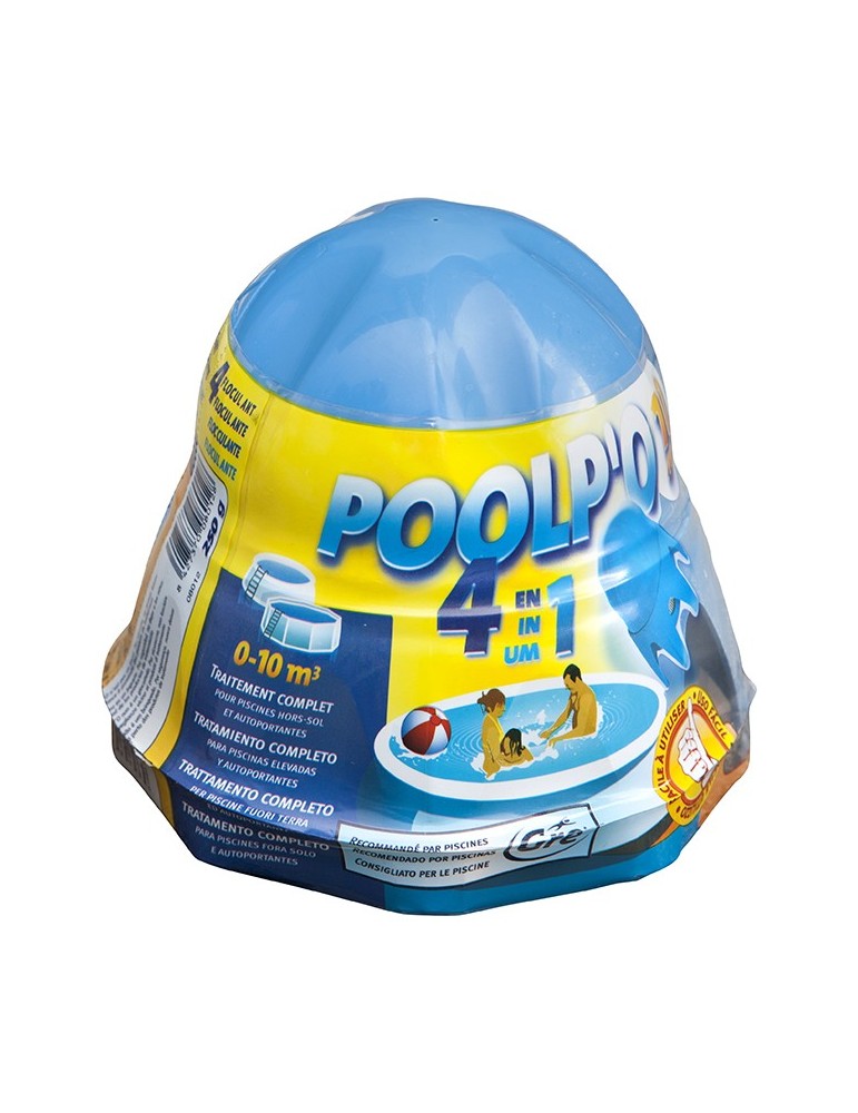 Solución de tratamiento, 4 acciones: Higienizante, antibacteria, antialgas y floculante. 10 m3. Duración 3 semanas.