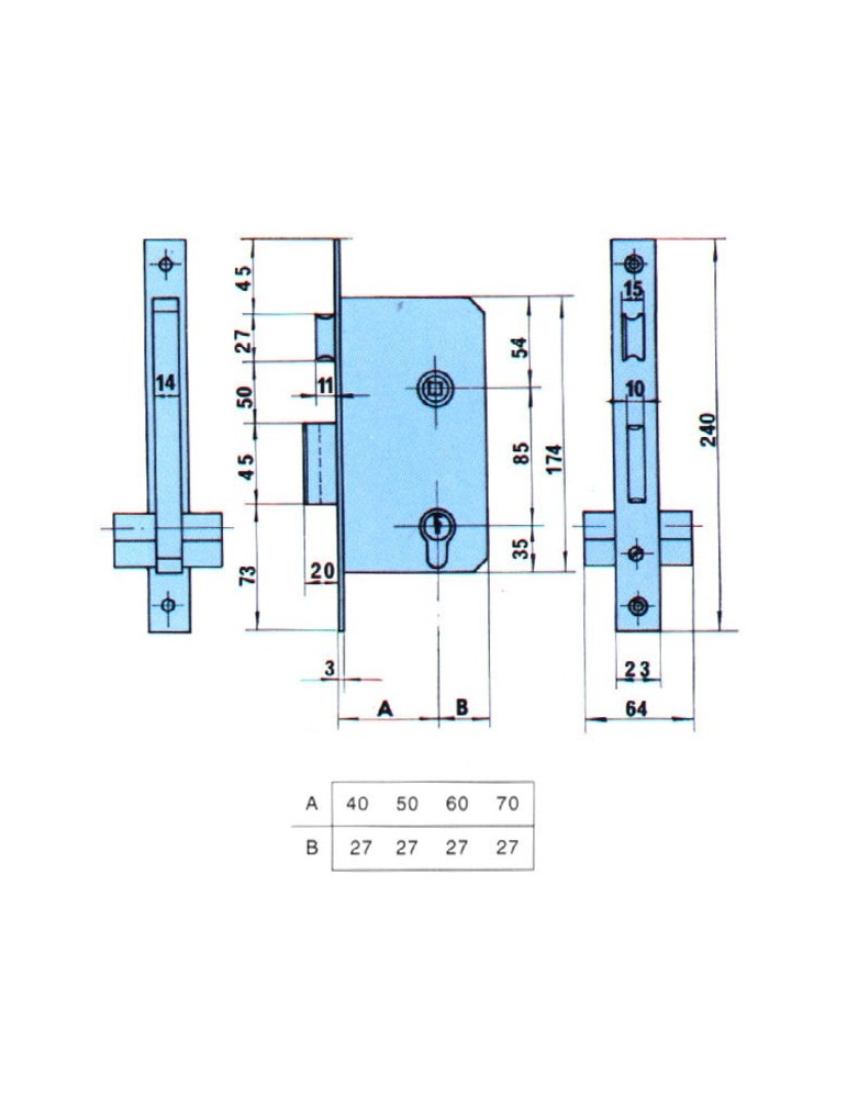CERRADURA EMBUTIR HL 50 MM 5401/5700