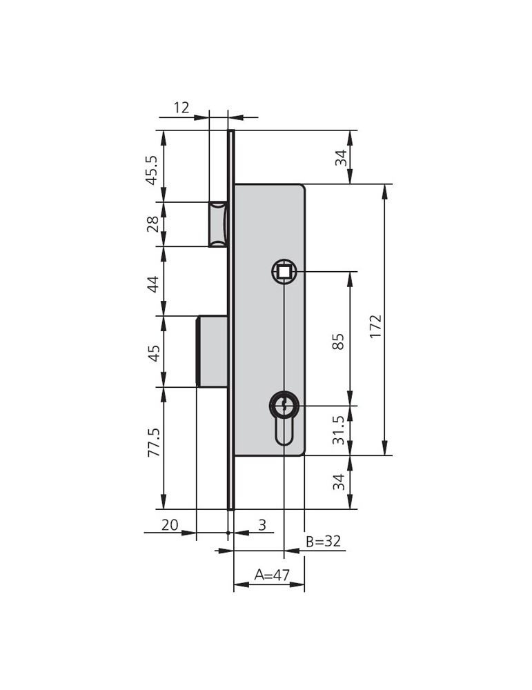 CERRADURA EMBUTIR MET HN 20 MM 1983/20/0