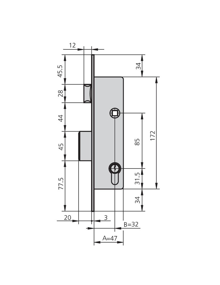 CERRADURA EMBUTIR MET HN 20 MM 1990A20/0