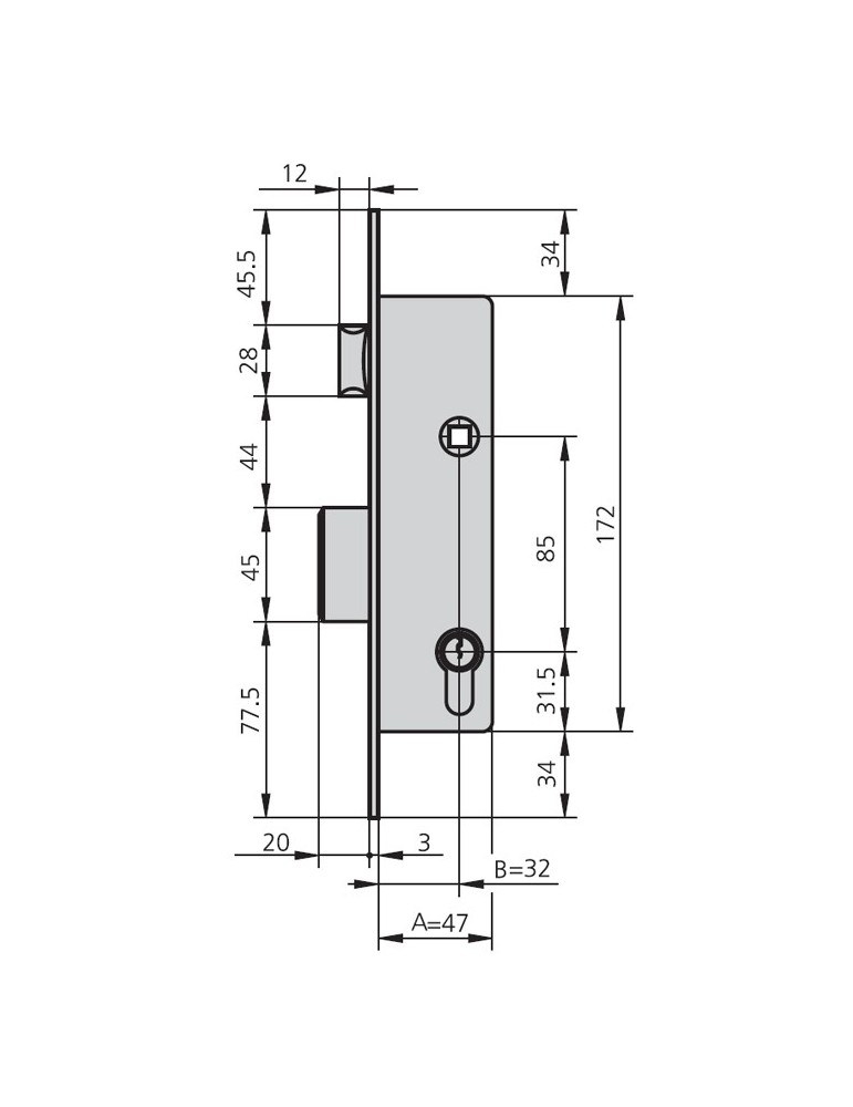 CERRADURA EMBUTIR MET HN 32 MM 1995/32/0