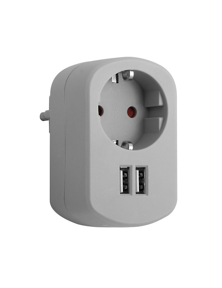 CLAVIJA ADAPTADOR 1T+2 USB GRIS 16 A CL118123