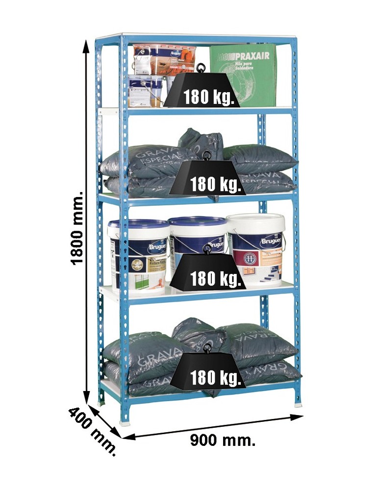 ESTANTERIA S/T AZUL/BLANCA 180X90X30 PT0970