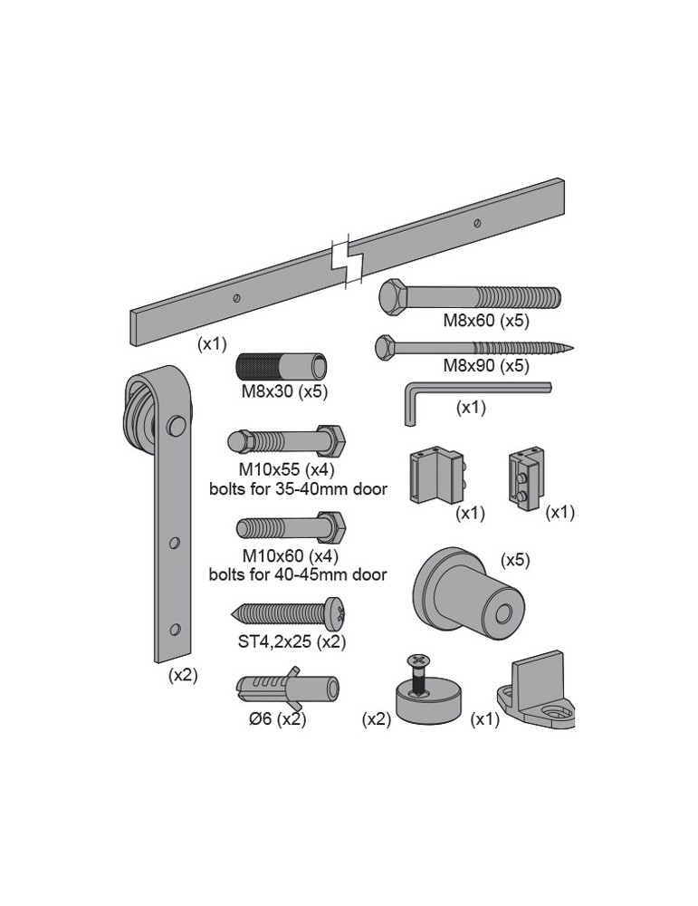 KIT CORREDERA RUSTICO 80 NEGRA 2 M 0 989 00