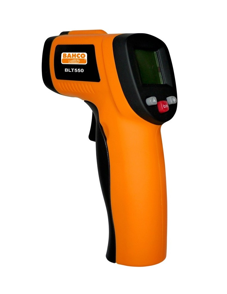 Visor laser. -50ºC a +550ºC. Resolución 0,1ºC. Dist./área medida: 12:1. Pila 9 V (no incluida).
