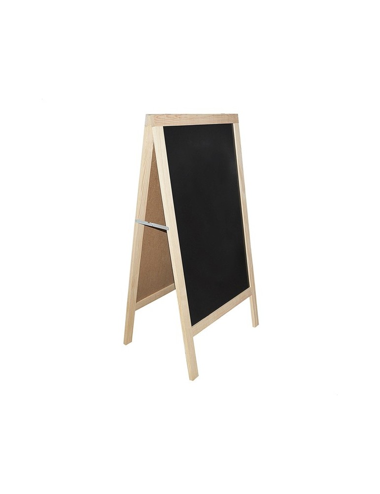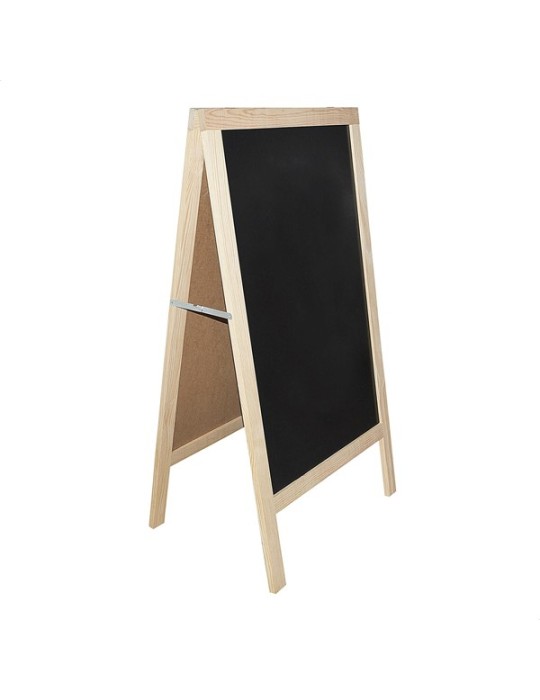 Pizarra con doble cara en color negro para pintar a tiza, fabricado en madera de pino. 55 x 34 x 100 cm.