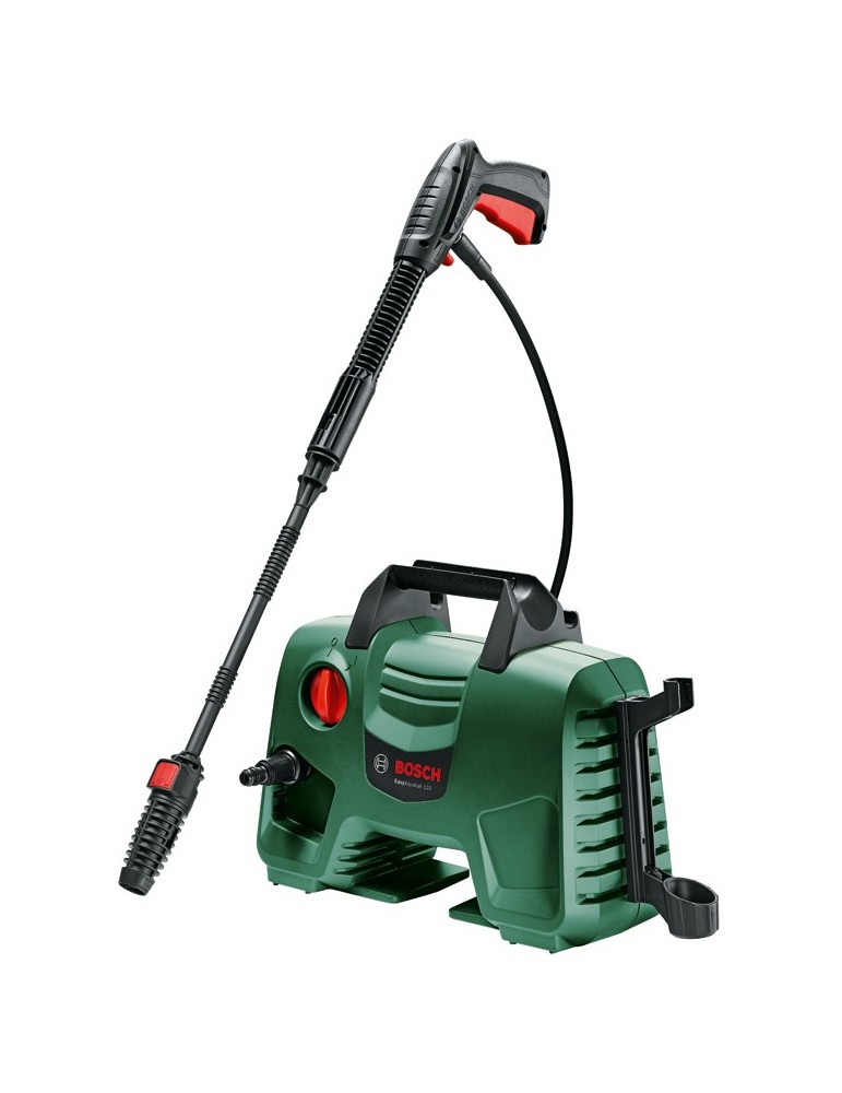 110 bares. 330 l/h. 1.300 W. 40ºC. Pistola Bosch. Autostop. Manguera 3 metros. Boquilla Vario jet fan. Boquilla rotativa. Boquilla detergente 450 ml. Filtro de agua opaco.