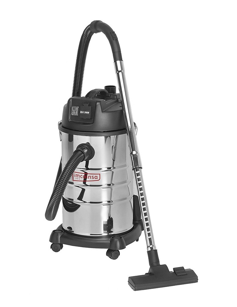 Aspirador para polvo y líquido en acero inoxidable de alta calidad. Motor 1.200 W. Depósito 30 lt. - Manguera 4m Ø35 mm. Con función SOPLADO y SINCRONIZADA-TELECONTROL