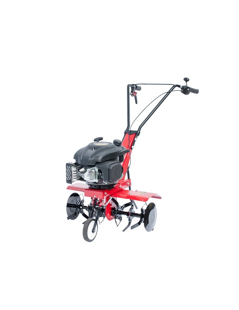 150 cm3/2,5 kW. Motor 4T. Ancho de trabajo: 64 cm. Con discos de protección laterales. Puede utilizarse a 36 cm ancho con 2 juegos de fresas, a 60 cm de ancho con 3 juegos de fresas y a 64 cm con discos. Embrague correa. Peso neto: 37 kg. Compacta y ligera. monomarcha.