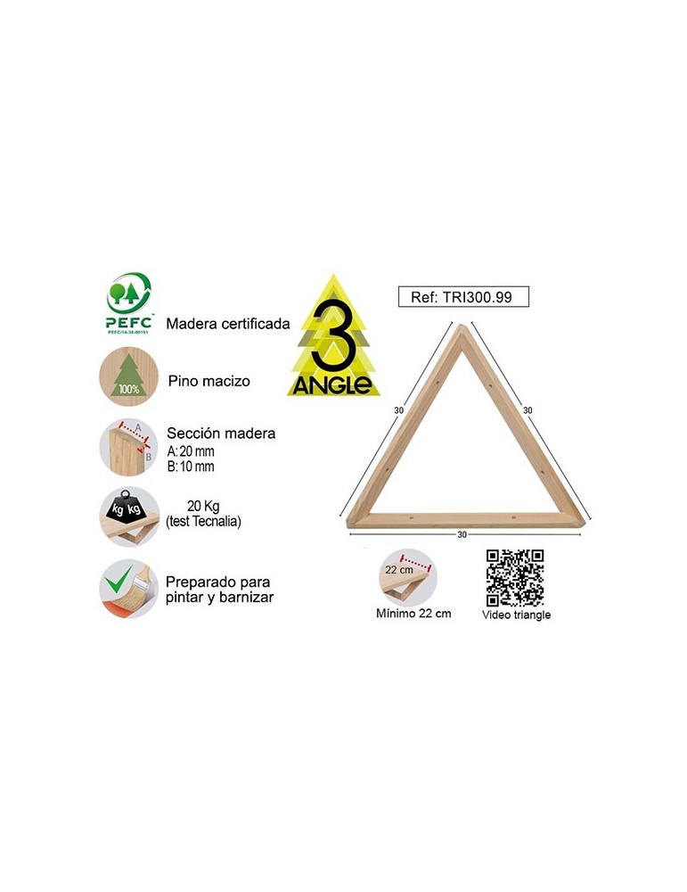 ESCUADRA TRIANGLE PINO S/BARN 30X30X30 TRI300.99