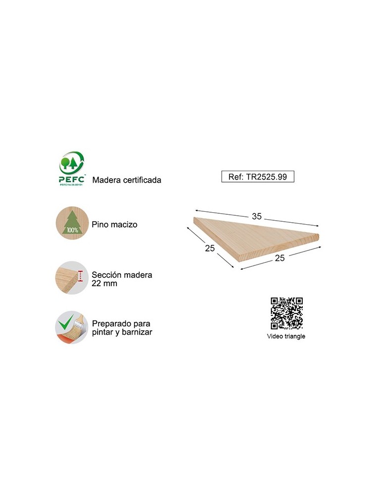 Pino macizo. Preparado para pintar y barnizar. Sección 22 mm. 25 x 25 cm.
