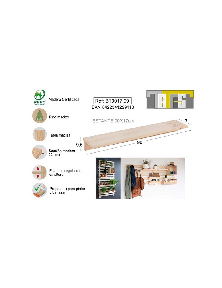 BALDA TETRIS PINO 22 MM S/BARN 90X17 CM BT9017.99