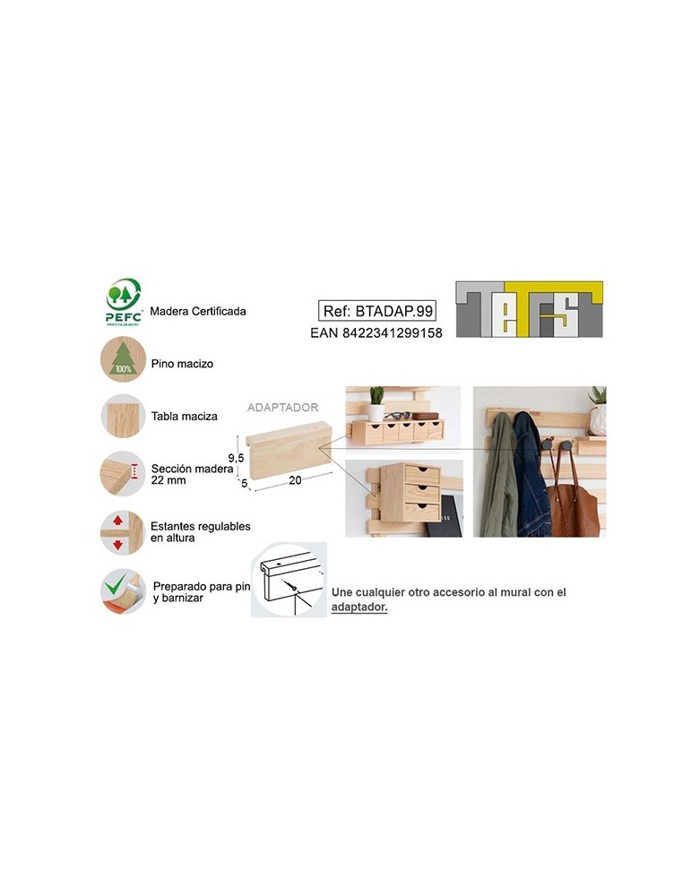 ADAPTADOR TETRIS PINO 22 MM S/BARN 20X5X9,5CM BTADAP.99