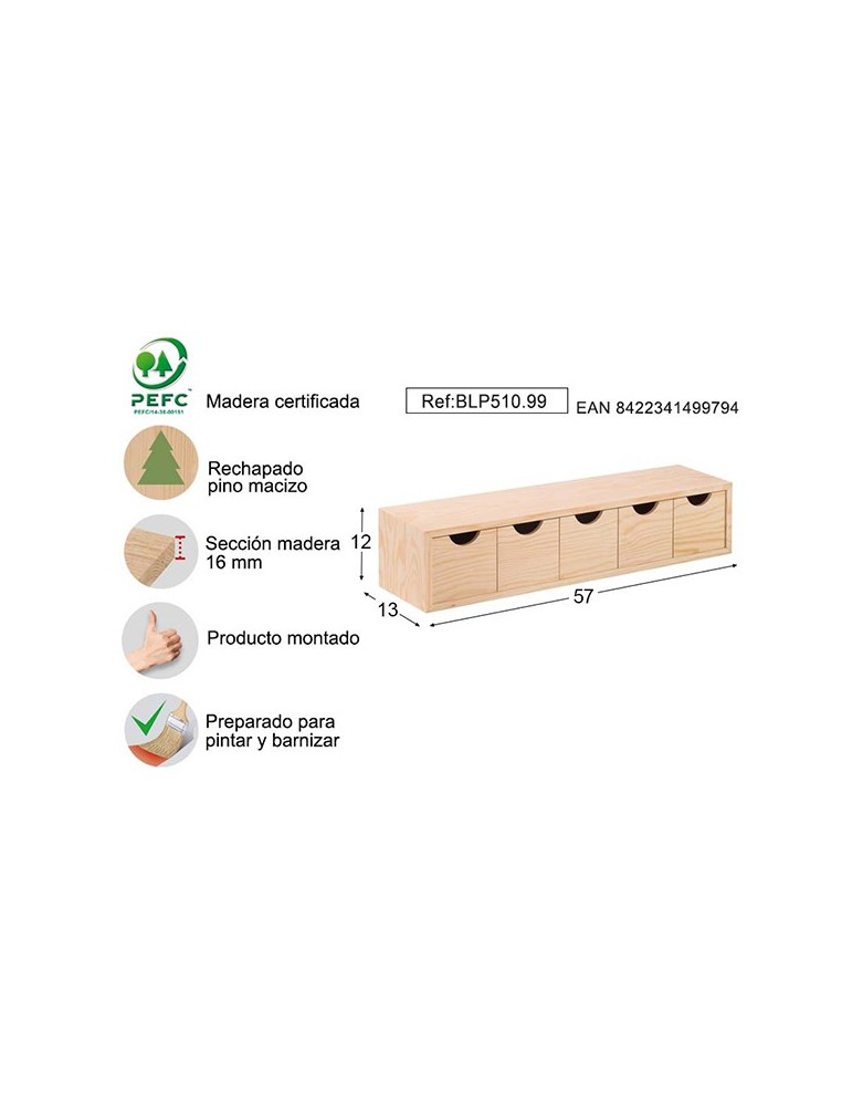 CAJONERA 5X1 PINO S/BARN 57X13X12CM BLP510.99