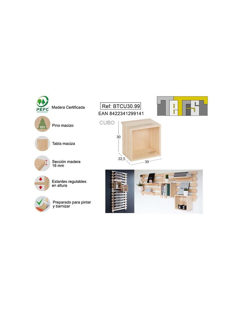 CUBO TETRIS PINO S/BARN 30X30 CM BTCU30.99