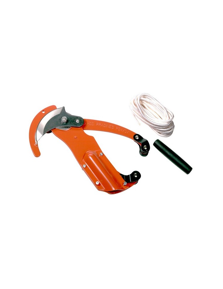 Con hoja estampada y con doble bisel. Corte sencillo y seguro en alturas sin una escalera si se utiliza con un poste de extensión. Menos esfuerzo necesario gracias al mecanismo de polea triple. Capacidad de corte 40 mm.