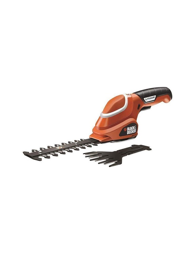 Kit para arreglar setos y cortar bordes en jardines pequeños. Batería 7,2 V. Cuchillas de 15 cm de longitud y 8 mm de separación. Tijeras de 10 cm y 23 mm. de separación.