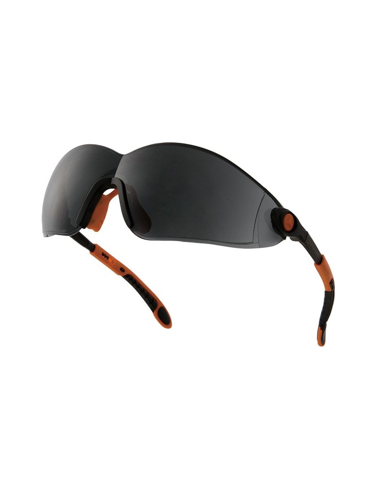 Monobloque. Patillas nylon abatibles y ajustables. Conteras espatuladas. Puente nasal TPE flexible extraconfort. Protecciones laterales. Montura: nylon. Oculares: policarbonato. Peso: 26 g. NormatIVA