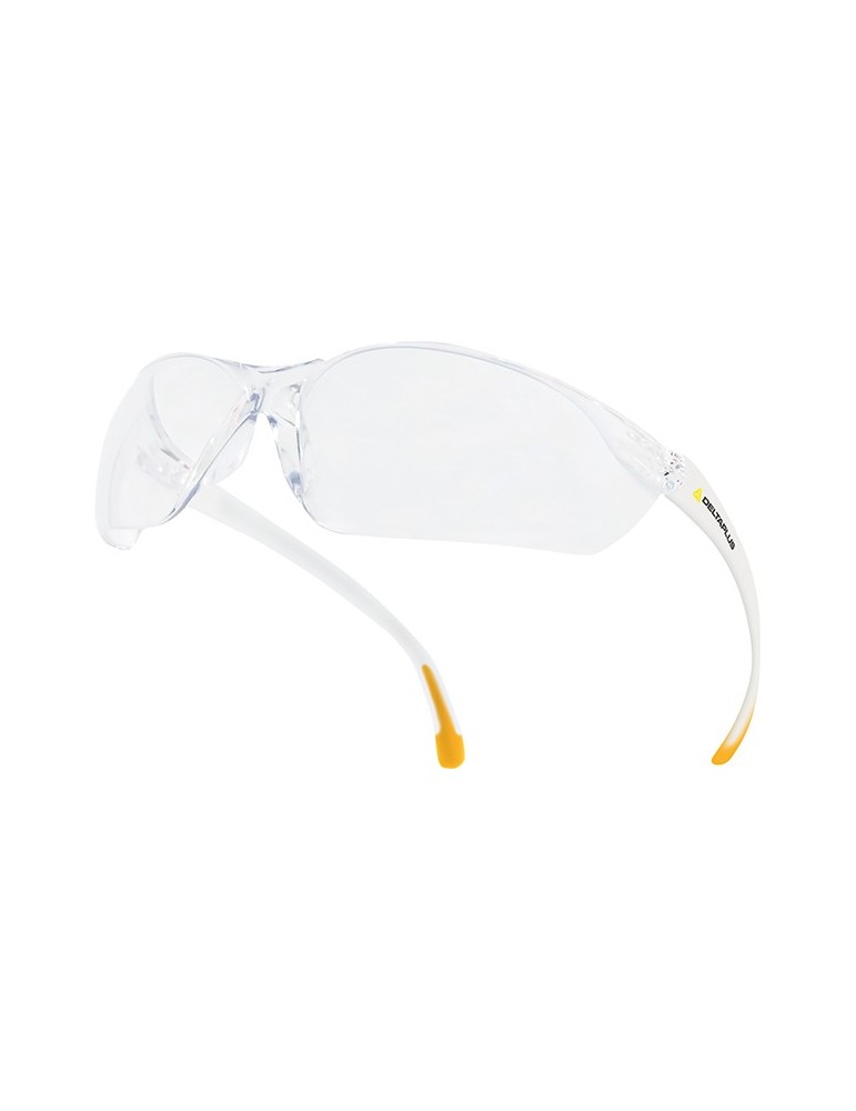 Gafas de policarbonato monobloque. Puente nasal de policarbonato integrado. Patillas de policarbonato. Conteras de PVC antideslizantes.