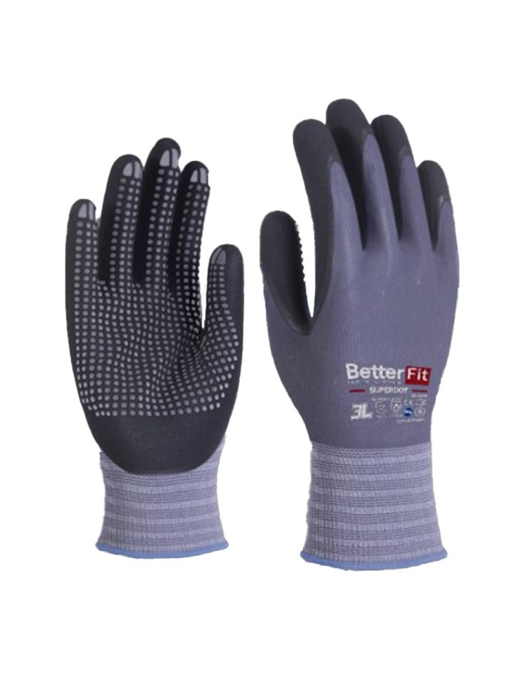 Soporte elástico de Nylon sin costuras, recubierto de nitrilo esponjoso foam antideslizante y dots de nitrilo para mayor agarre, válido para trabajos térmicos hasta 100º de temperatura. T-8 a 10.