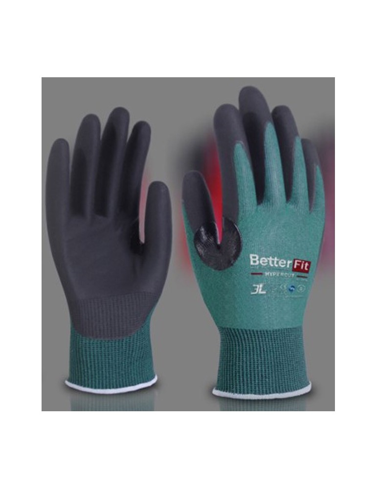 Guante resistente al corte 3 tipo B con soporte nylon y fibras especiales, recubierto de nitrilo foam, con refuerzo entre dedo índice y pulgar para mayor durabilidad. Con tratamiento Actifresh que elimina bacteria. Tallas 8 a 10.