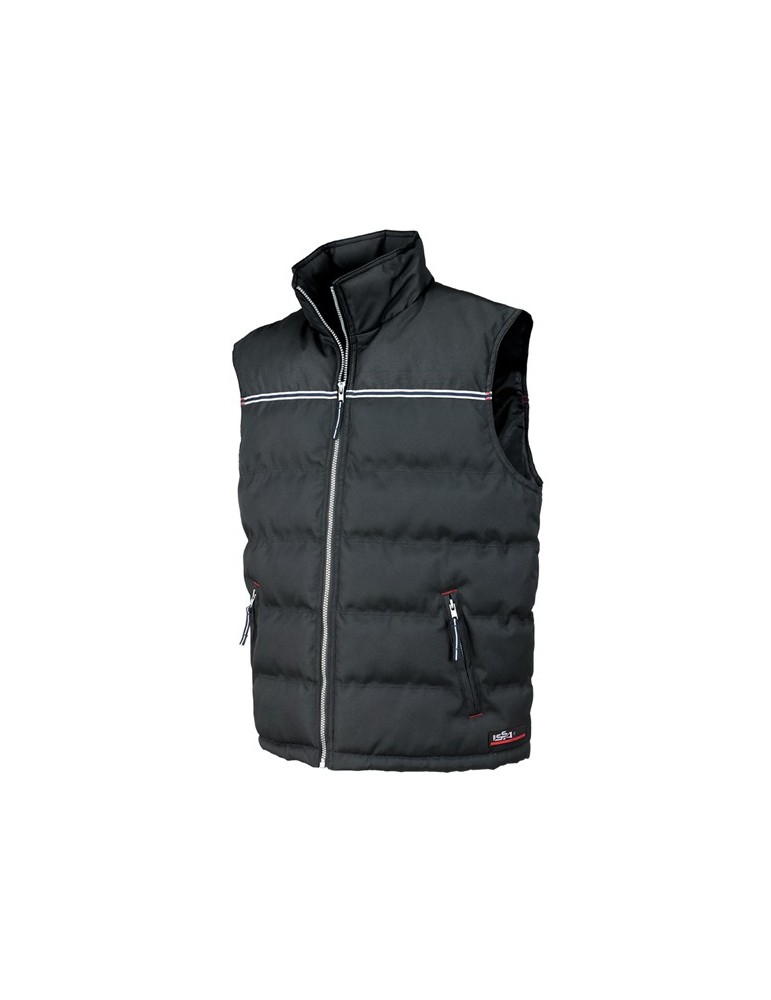 Chaleco ligero acolchado con una línea moderna y deportiva. El tejido Oxford da al chaleco una óptima impermeabilidad y una resistencia a la abrasión necesaria para el uso laboral. Composición: poliéster Oxford recubierto de PU. Colores: negro. T-M a T-XXL.