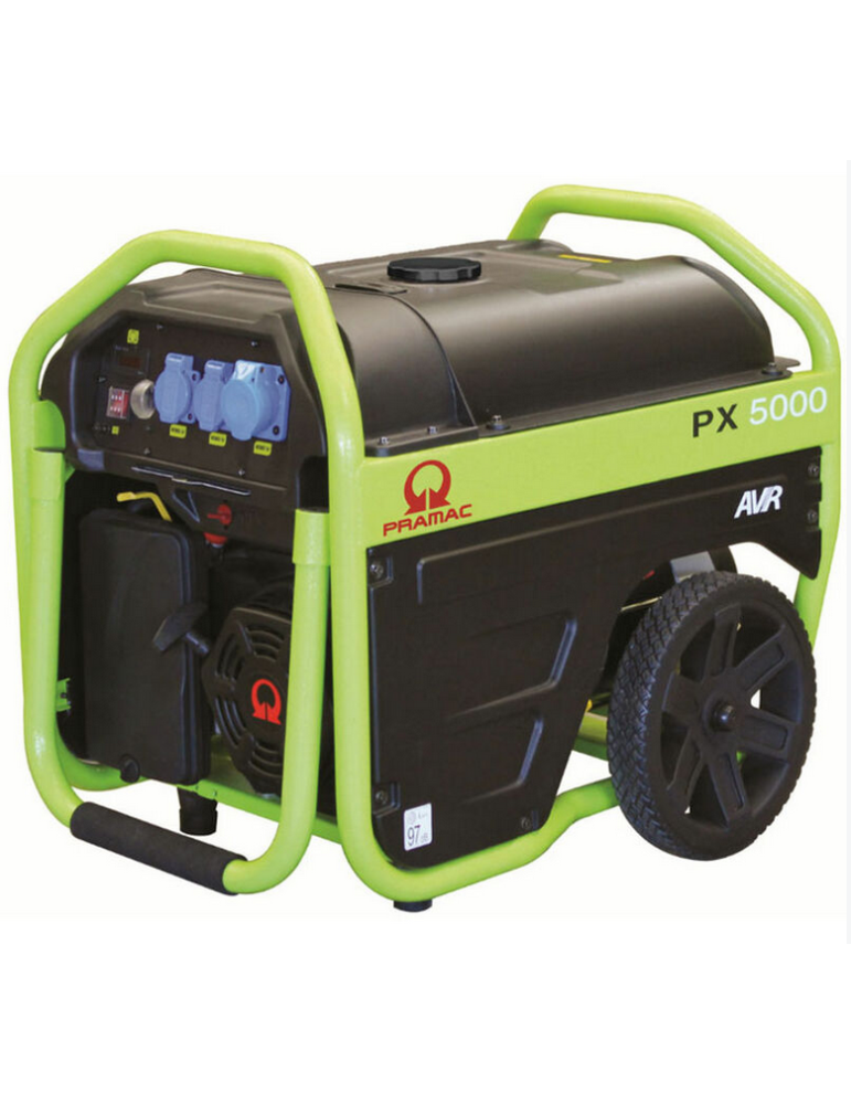 Generador monofásico (230 voltios) marca Pramac con motor de gasolina Pramac SR188F, 3000 Rpm. Equipado con sistema AVR, que regula de manera automática la tensión del generador, ofreciendo estabilidad en la corriente. Este generador es perfecto para suministrar energía allí donde se necesite, ya que va montado sobre una estructura fuerte y compacta, equipada con un asa plegable y kit de ruedas integradas para facilitar su transporte. Cuenta con una potencia de emergencia de 4,2 kVA y una potencia continua de 3.9 kVA.