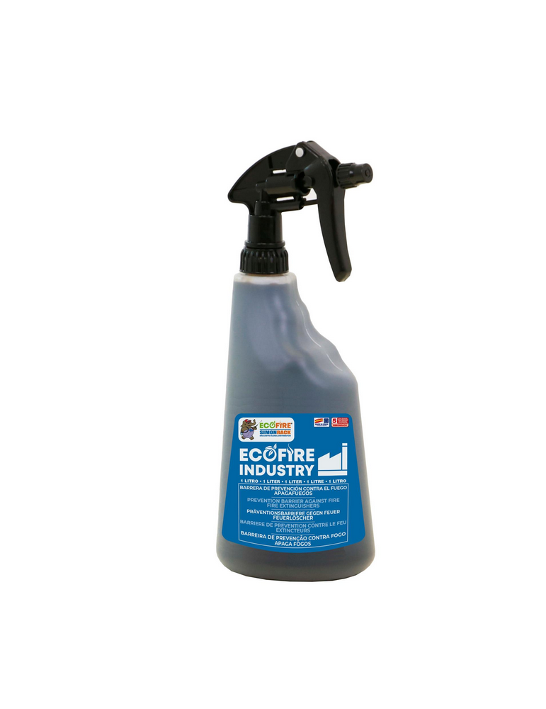 Ecofire de Simonrack es un bloqueante de fuego orgánico revolucionario en el mundo de la extinción de incendios. Ecofire no sólo consigue apagar el fuego, sino que además las sustancias que se desprenden en el proceso no suponen toxicidad alguna para el medio ambiente. Además los componentes de Ecofire son completamente inocuos, siendo un producto 100% orgánico. Su proceso de fabricación tampoco tiene impacto medioambiental. Es apto para todo tipo de materiales como papel, cartón, plásticos, poliuretanos…, etc. Se puede usar en autobombas, motobombas y sistemas de extinción de incendio industriales. No se requieren medidas especiales para su manipulación. Es hidroscópico, no se seca porque absorbe la humedad de su alrededor. Donde se aplica Ecofire, ningún fuego arde ni se reactiva. Desaparece cuando llueven más de 10 litros por metro cuadrado, mientras tanto, perdura en el tiempo.