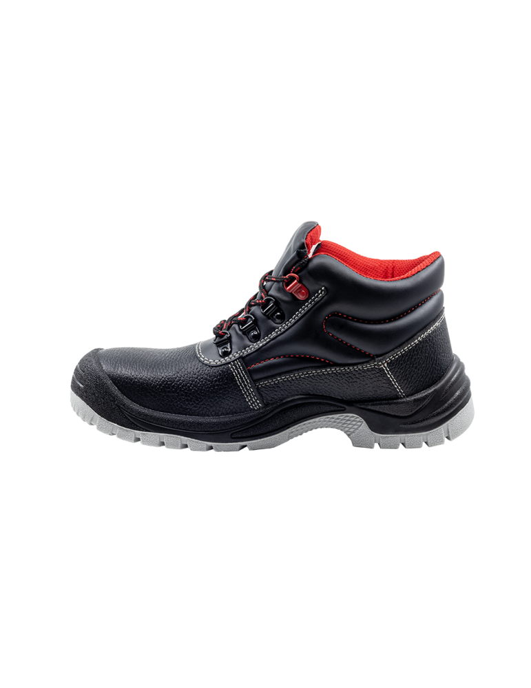 Modelos fabricados en piel de búfalo con grabado barton y tratamiento hidrófugo, forro textil acolchado para evitar rozaduras, suela en poliuretano de doble densidad, puntera de acero y plantilla antiperforación de acero.