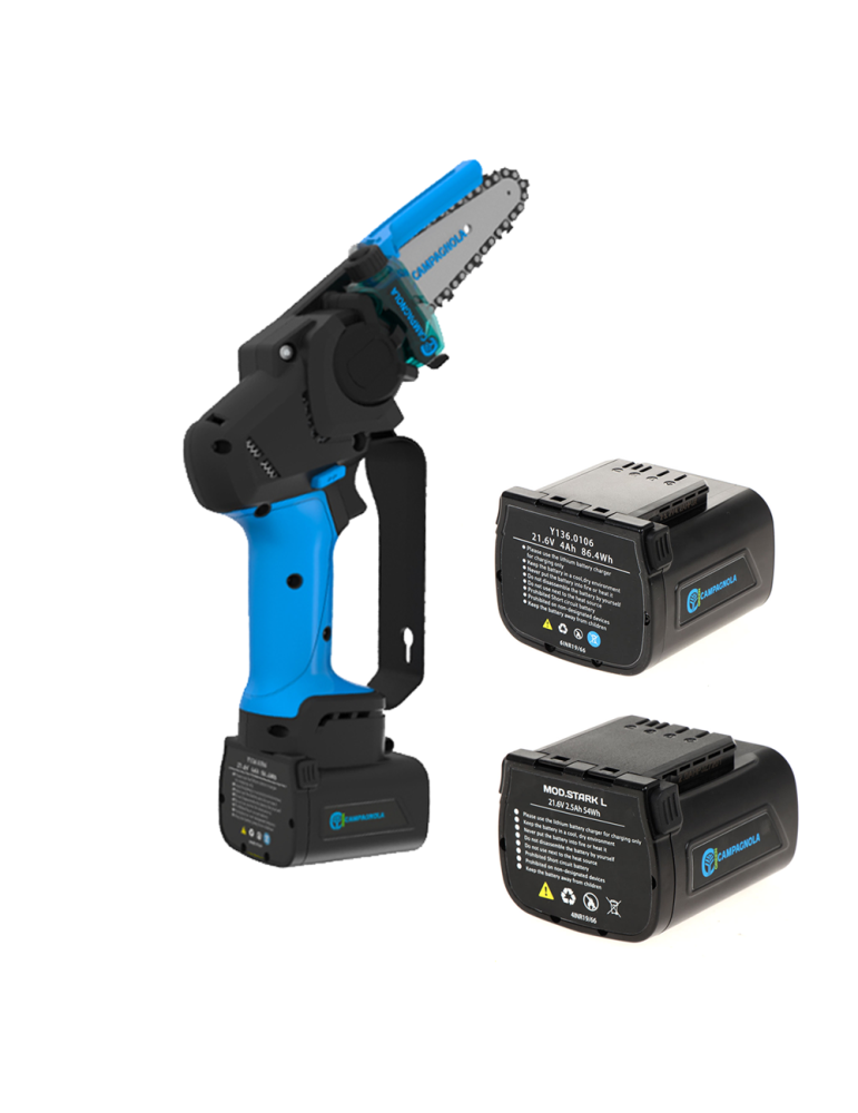 La fiabilidad y seguridad que ofrece al operario este producto para la poda en frutales y viñedos están garantizadas por el dispositivo de lubricación manual, que favorece una adecuada suavidad del movimiento de la cadena, y por la empuñadura antideslizante con interruptor de seguridad, combinado con una protección contra los rebotes.