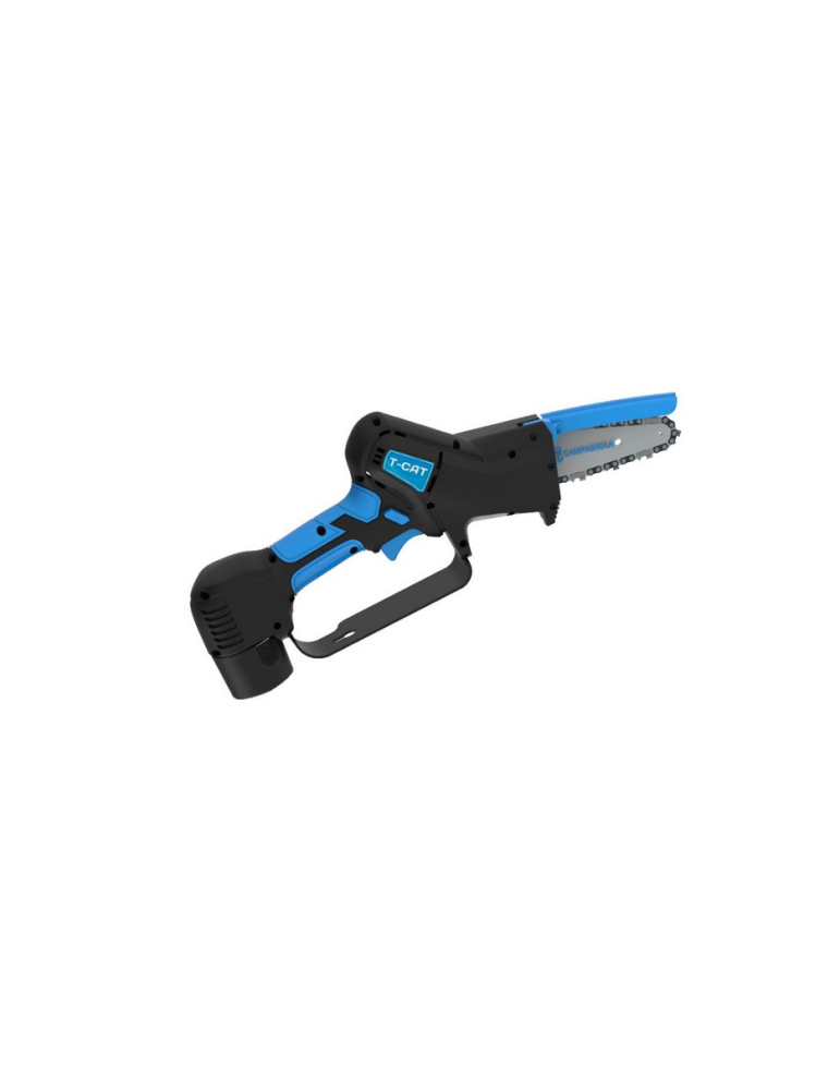 La motosierra T-CAT es la más grande de las tijeras eléctricas sin cable y con batería incorporada de Campagnola, tiene un corte de 8 cm, una potencia de 300 w y un cargador de baterías con doble salida, además cuenta con dos 2 baterías -10,8 v de litio con una autonomía de 50 cortes por batería, La falta del cable permite un trabajo suave y sin obstáculos en los movimientos.