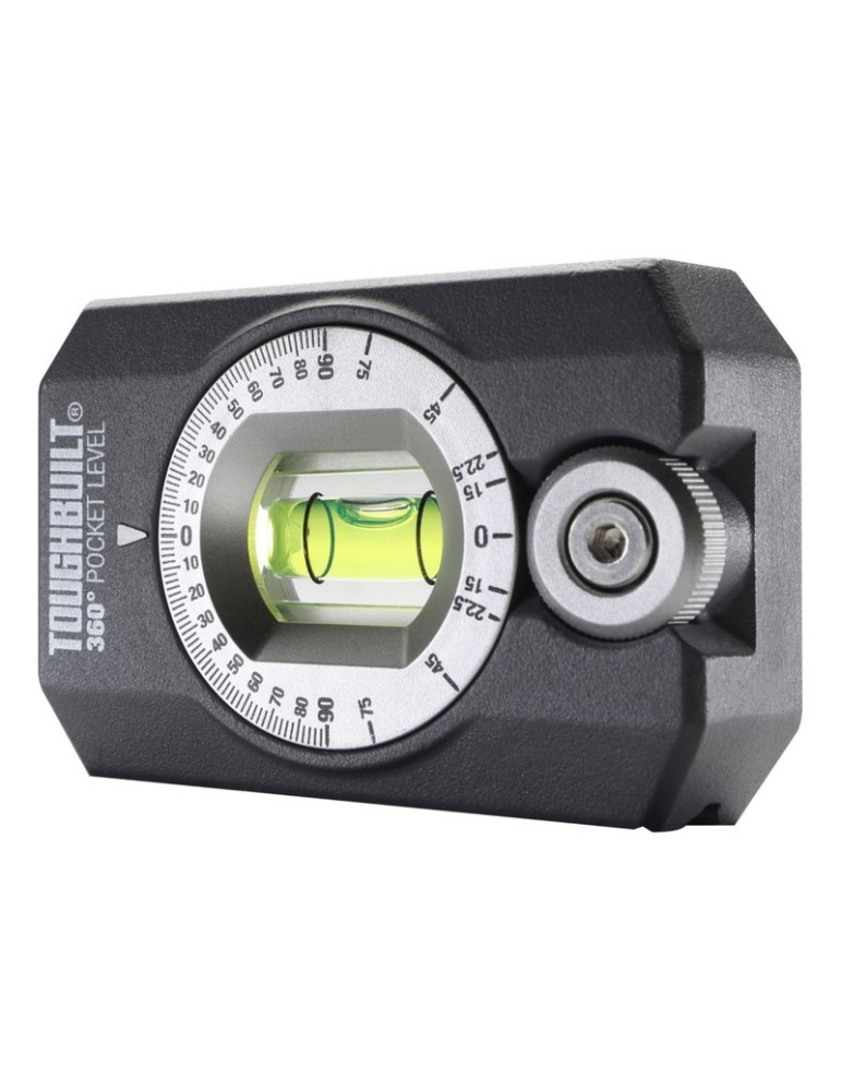 El nivel de bolsillo de 360 grados mide cualquier ángulo o lo confirma/duplica de forma rápida y precisa. • El juego de viales ToughBuilt gira con precisión e identifica cualquier ángulo • Construcción de fundición a presión de servicio pesado para mayor durabilidad • Compacto y portátil • Los potentes imanes de tierras raras garantizan una sujeción excelente