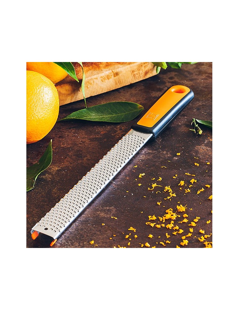 Para rallar sin esfuerzo cítricos, quesos duros, chocolate, hortalizas y jengibre. Cuchillas en acero inoxidable de alta calidad y larga duración. Extremos antideslizantes para mayor seguridad. Funda protectora que garantiza un almacenamiento seguro. Apto lavavajillas