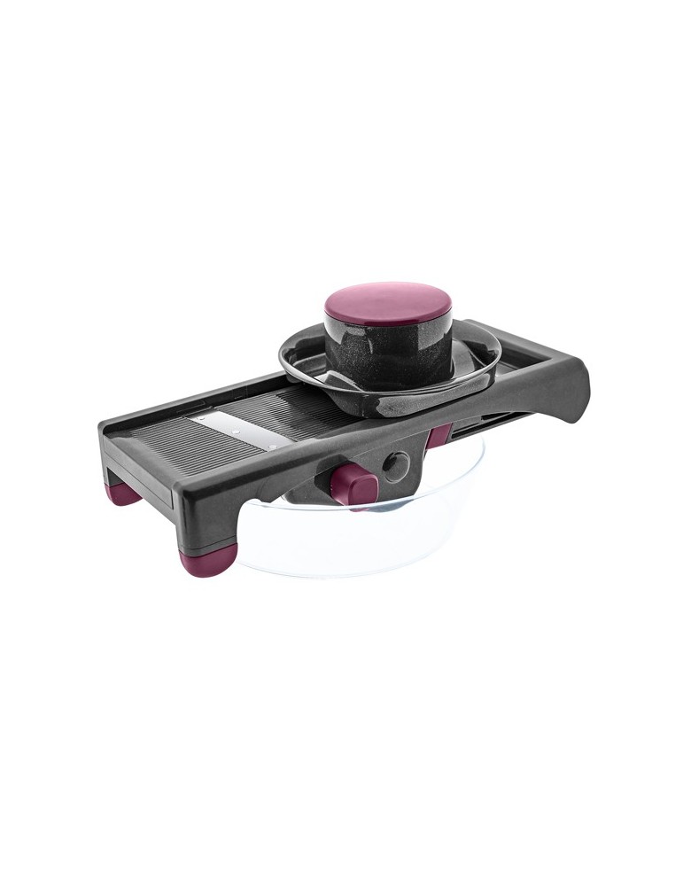 Rebana, corta y ralla. 2 cuchillas de acero inoxidable intercambiables. Cuchillas: lisa y ondulada, con soporte para guardar. Alojamiento cuchilla con cierre de seguridad. 3 niveles de rebanado: 3, 6 y 12 mm. Grosor de corte regulable de 1 a 7 mm.