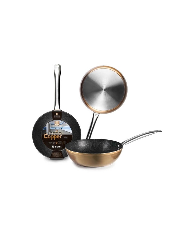 3 capas antiadherente. Válida para inducción. Mangos y asas inoxidables. Color cobre. SARTÉN HONDA 24 cm.