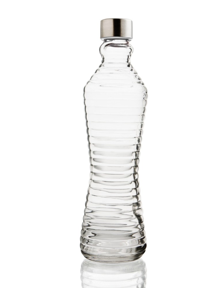 Botella 1 litro vidrio con tapón inox. Color transparente.