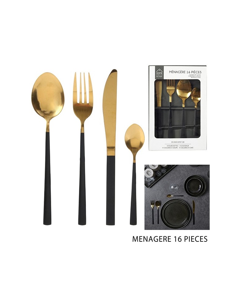 CUBERTERIA INOX NEGRO Y DORADO 16 PZAS KA3773