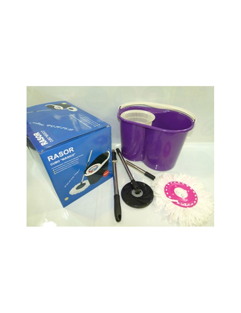 Sistema giratorio para escurrir la fregona, sistema de centrifugado seca la fregona con facilidad a la medida que quiera el usuario. El mango tiene un sistema de giro, que permite escurrir la fregona al máximo con el mínimo esfuerzo. Color lila o naranja.