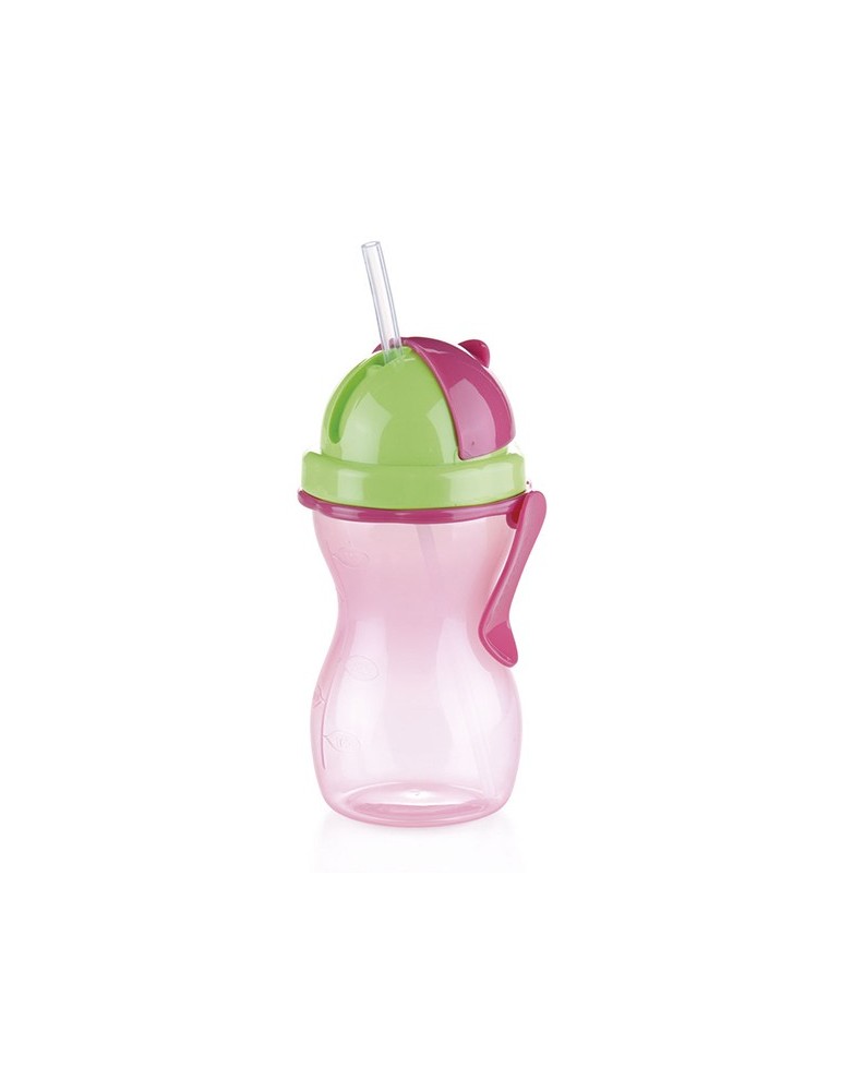 Cañita de silicona flexible y tapa, escala para medir fácilmente por fuera y clip para colgar. Excelente plástico seguro. Apto para frigorífico y microondas (sin el cierre). Apto para lavavajillas. Garantía de 3 años. 300 ml. Colores rosa o azul.