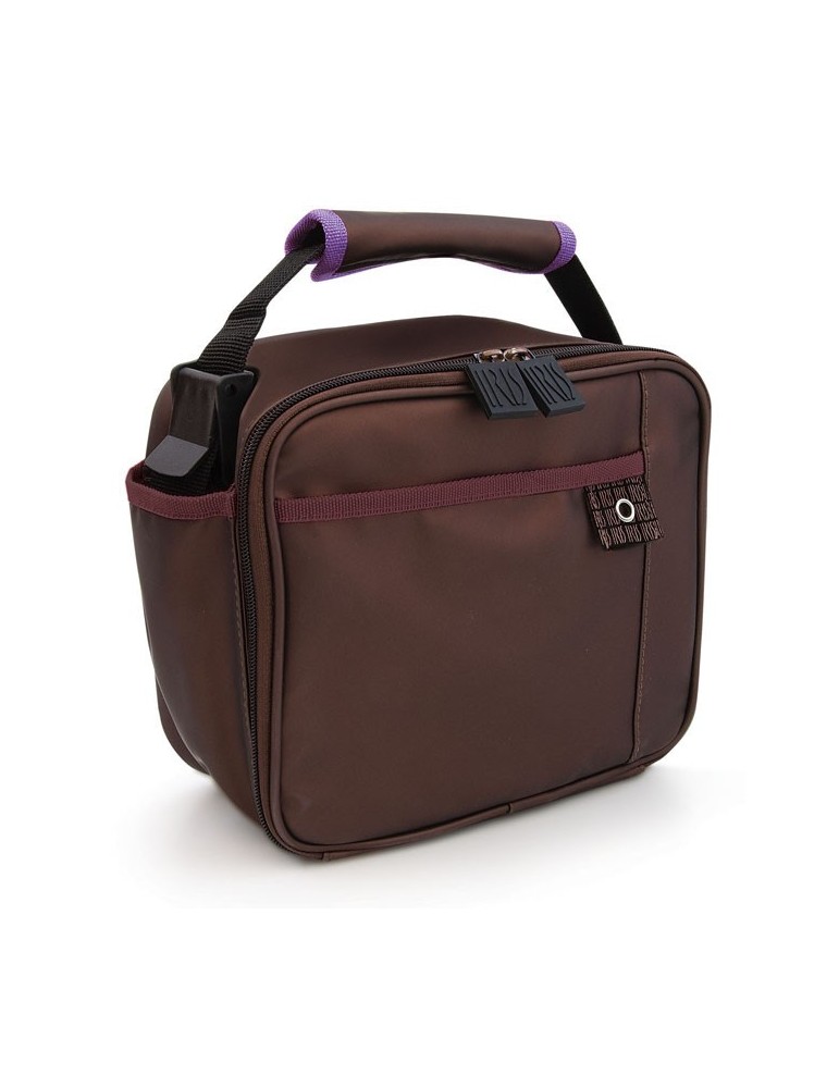 En poliéster. Incluye 2 contenedores herméticos y una bandeja (resto de accesorios no incluidos). Medidas: 18,5 x 21 x 11 cm. Color negra o chocolate.