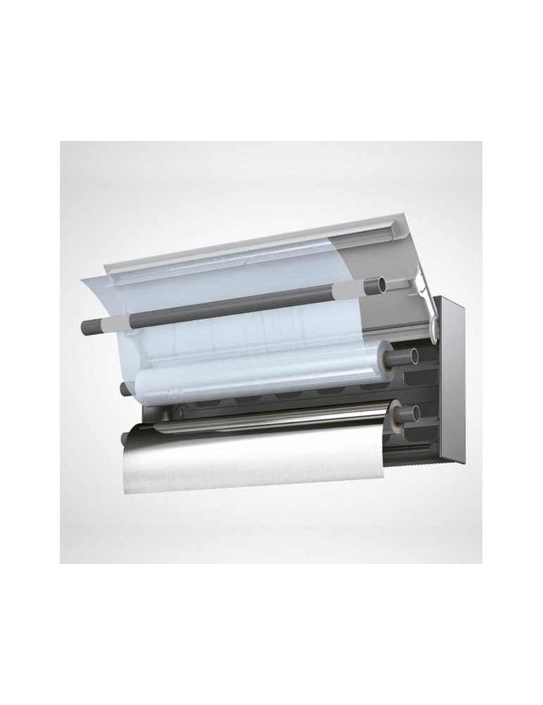 Adaptable: elige entre el portarrollos de cocina que se adapta a rollos de cualquier ancho, o el juego de 6 ganchos para colgar utensilios. Eficaz. Su tapa protectora mantiene los rollos ordenados y ocultos a la vista. 38x6x17 cm