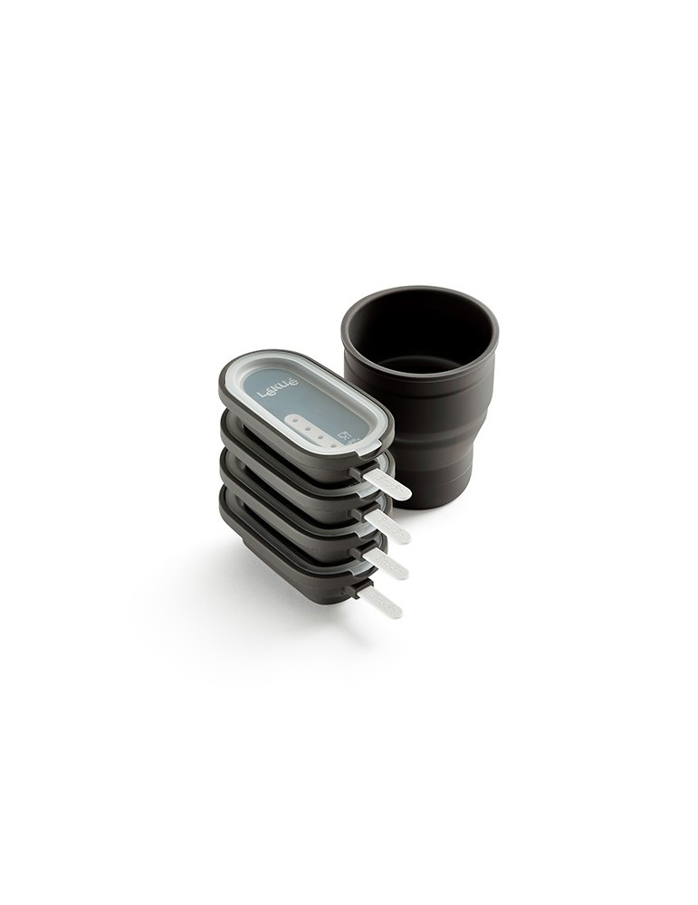 Set de 4 moldes apilables para crear mini helados cremosos con un recipiente colapsable de 100% Silicona Platino para poder elaborar de una forma muy rápida, fácil y perfecta coberturas crujientes.